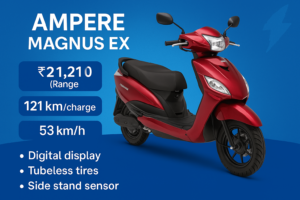 अगर आप ₹1 लाख के अंदर एक भरोसेमंद और अच्छा Electric Scooter लेना चाहते हैं तो Ola S1X और TVS iQube बेस्ट ऑप्शन हैं। अगर आपका Focus Low Maintenance और आसान Charging पर है तो Ampere Magnus EX और Hero Optima CX को जरूर देखें।